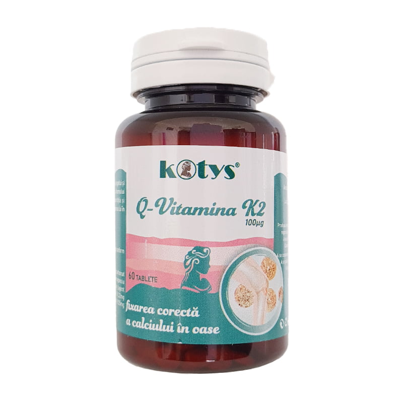 Descoperă beneficiile Vitaminei K2 100mcg KOTYS! Susține sănătatea oaselor, previne osteoporoza și contribuie la coagularea normală a sângelui.